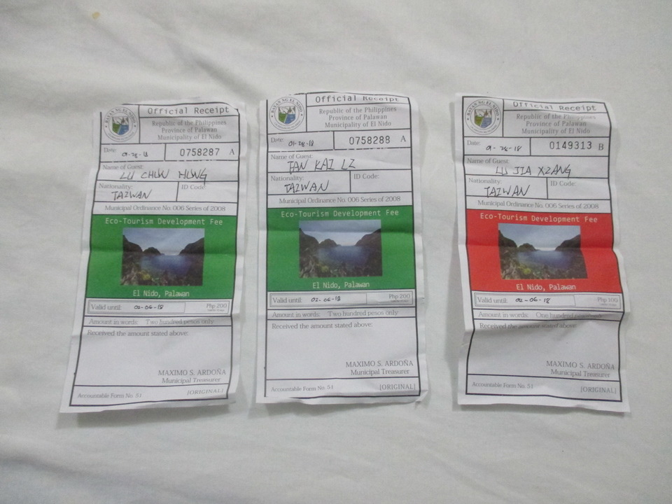 沙灘旁填資料並將ETDF交給派船人員,司機就請我們將今天的費用交給他並告訴我們要搭那條船,並且不忘詢問我明天要做什麼,我說如今天玩的愉快,明天則會參加tour C。他則報給我1000p 的價格。