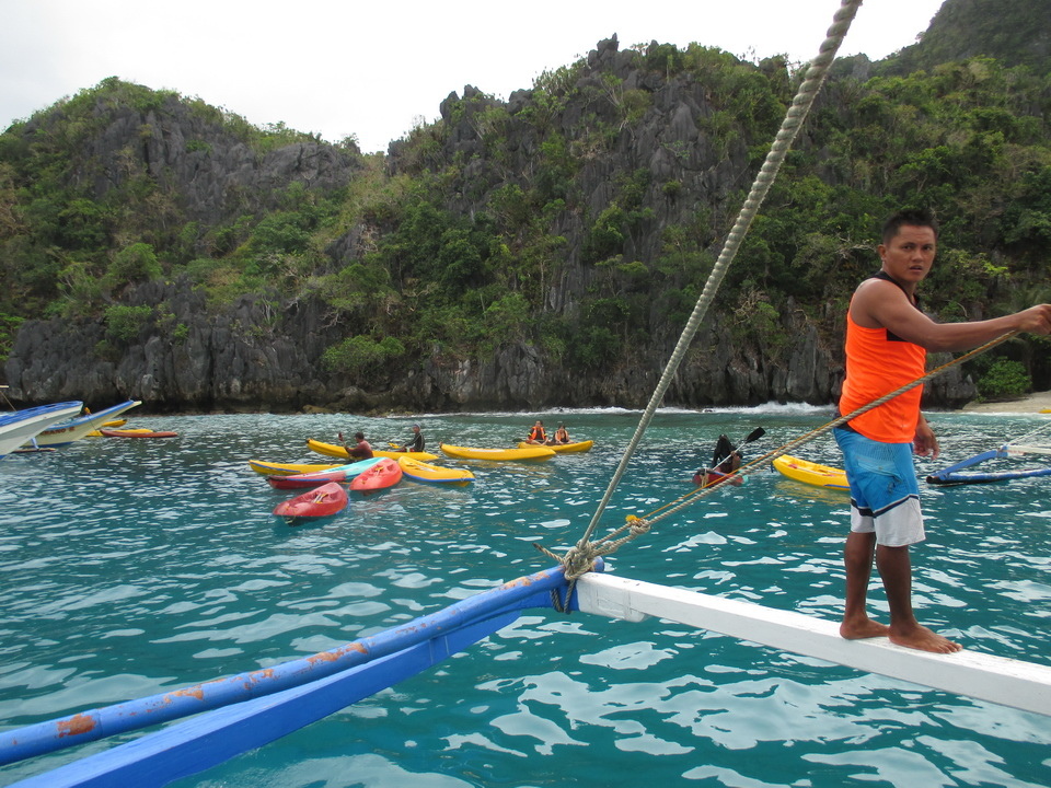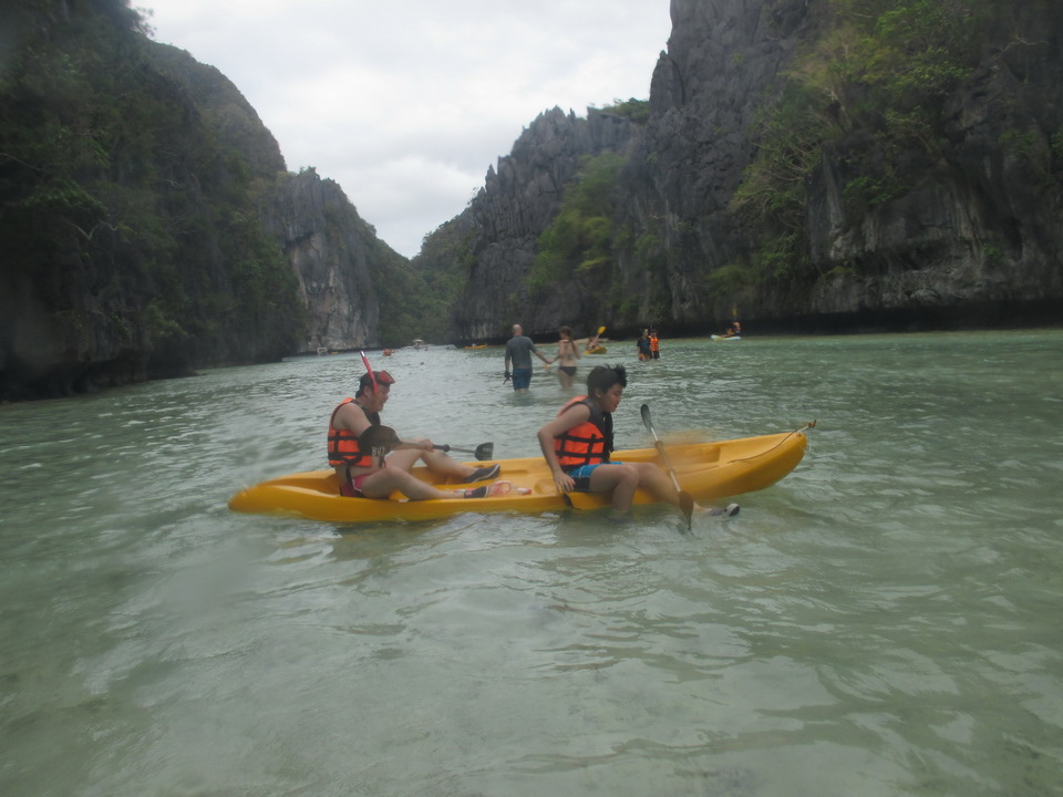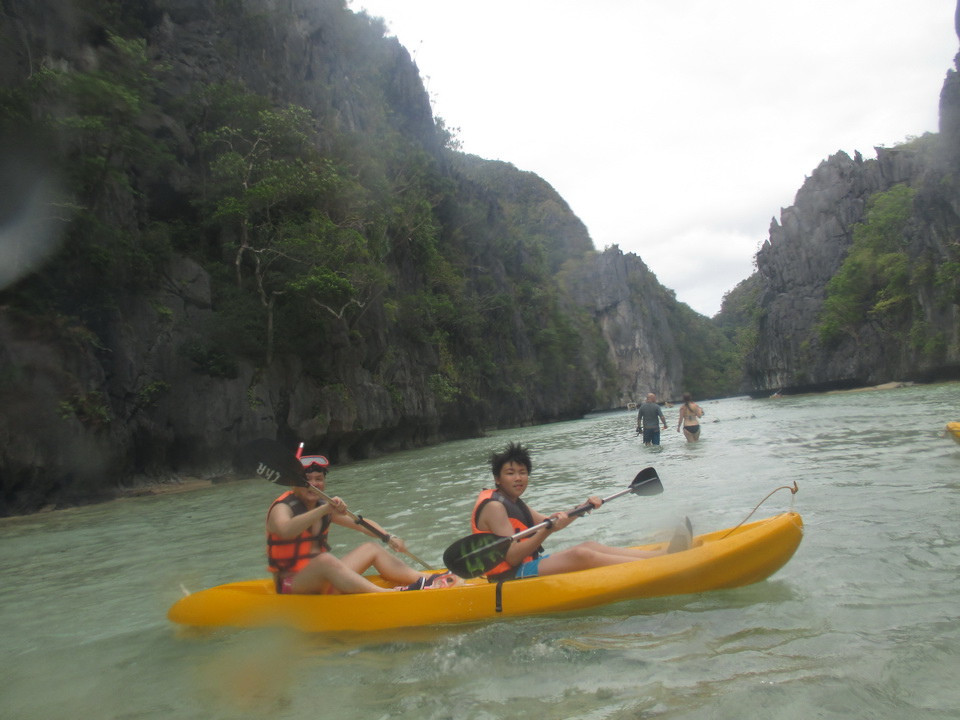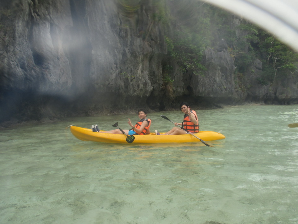 最後影景點則為小潟湖,也是要可以看kayak,2人船為400p , 3人以上則為600p,但因 jacky 身上已不夠錢,試著和船員殺成300p/艘,但是沒成功,所以我們和大陸遊客都覺得太貴了,所以不租了就浮潛!!