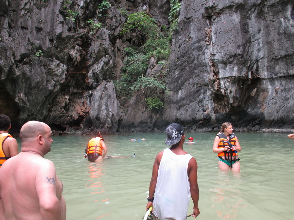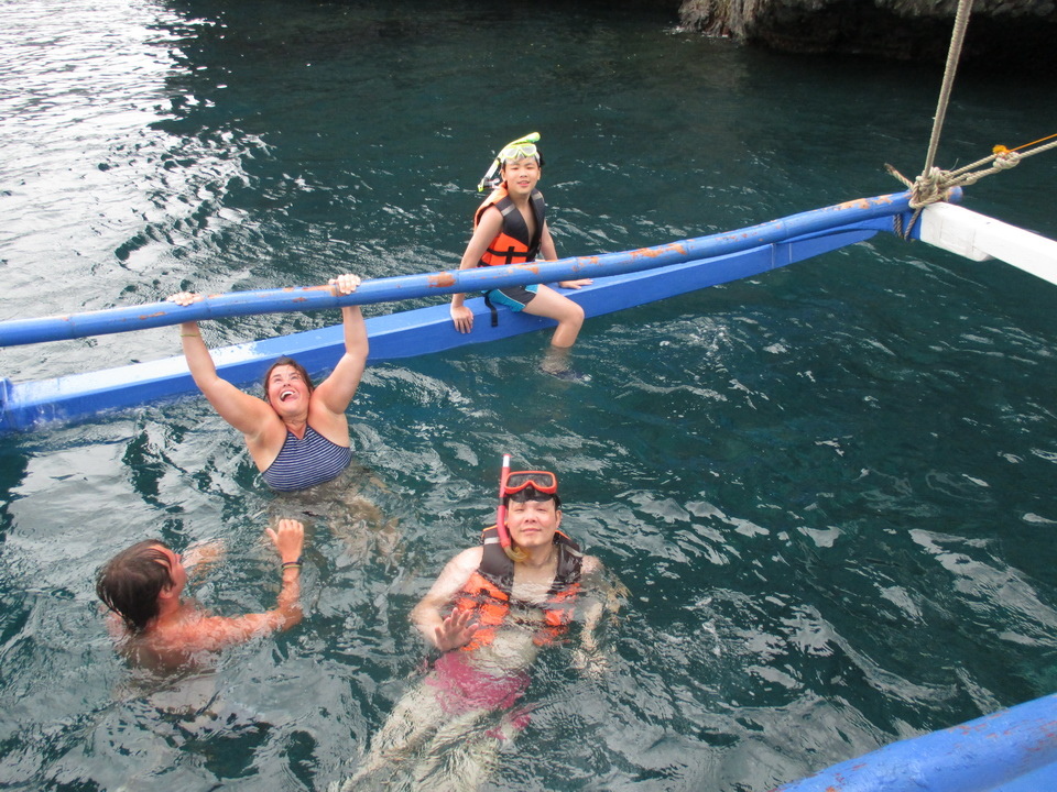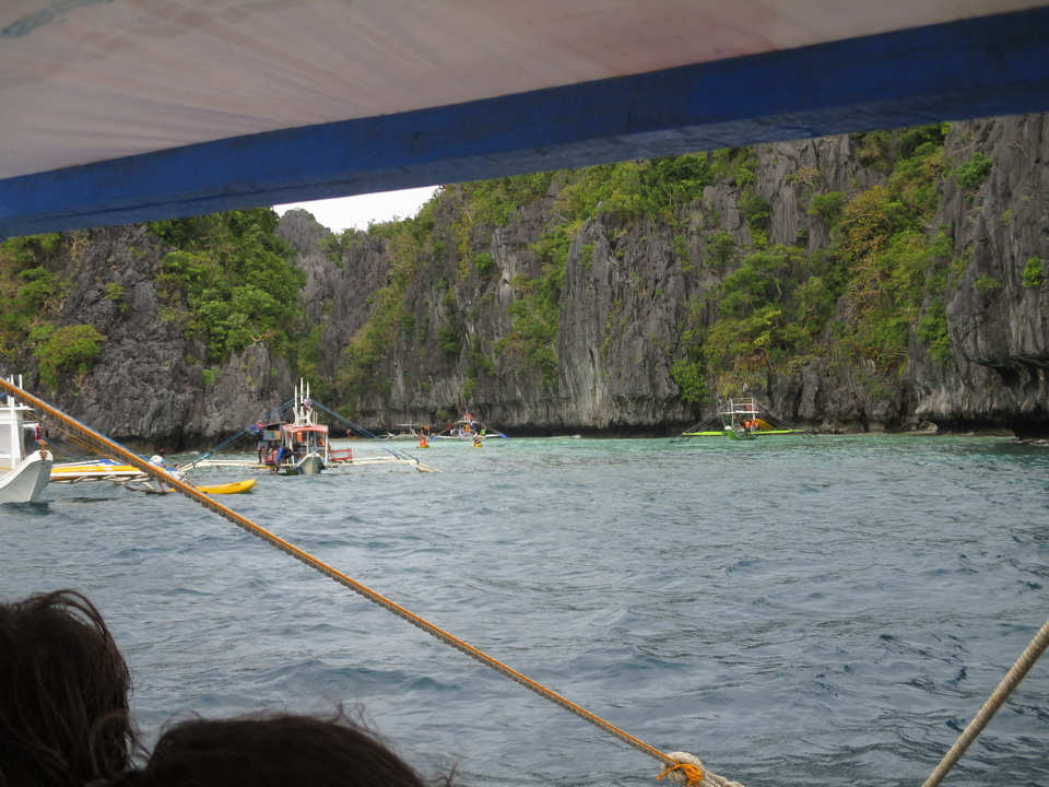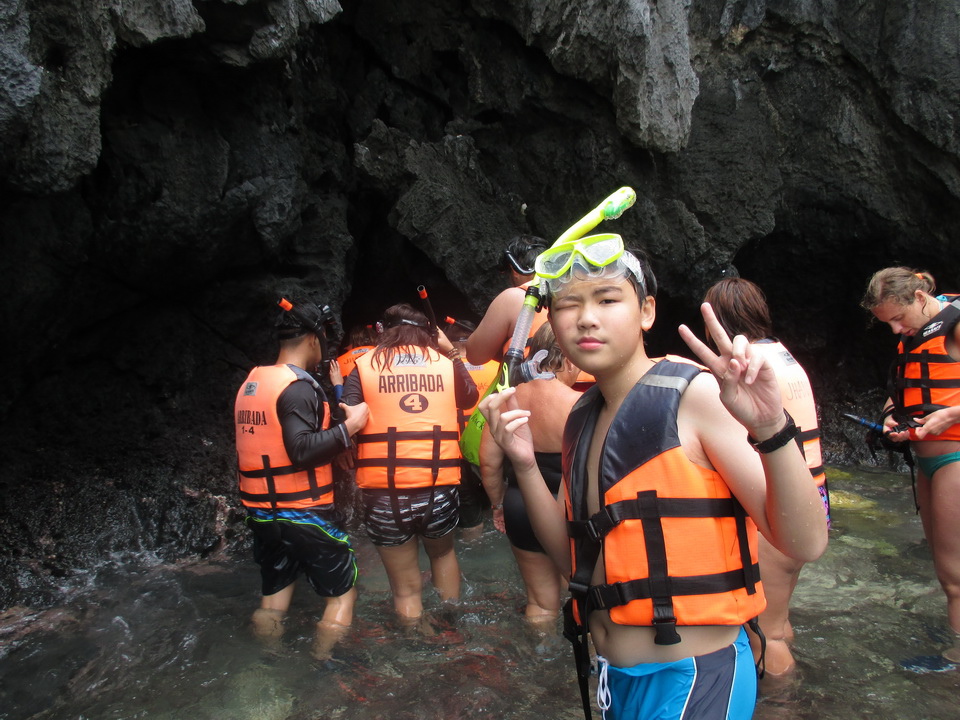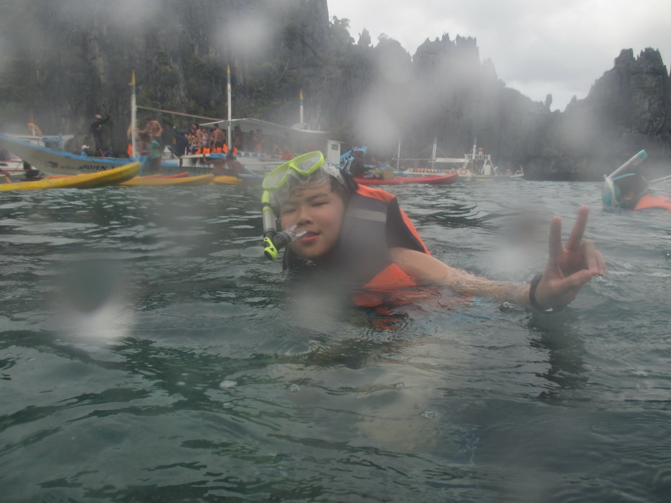 最後影景點則為小潟湖,也是要可以看kayak,2人船為400p , 3人以上則為600p,但因 jacky 身上已不夠錢,試著和船員殺成300p/艘,但是沒成功,所以我們和大陸遊客都覺得太貴了,所以不租了就浮潛!!