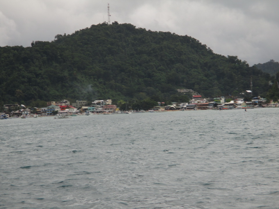 當jacky 一家人搭乘 RORO bus 來到愛妮島的公車站時,已是PM10:00 ,此時公車站一片漆黑,一台 tricycle 都看不到,jacky 正擔憂如何到旅館呢???此時就走出一位 tricycle 的司機,討價還價後以60p載我們到旅館。