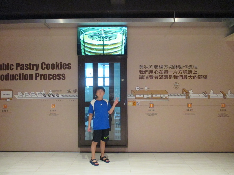 老楊觀光工廠內唯一可見到製作方塊酥就在此,但今天沒看到在運作,那只好看看上面的電視牆!!!