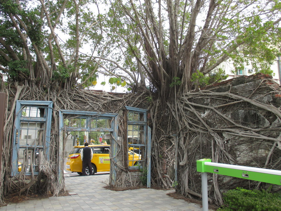 警察廳舍已被大榕樹來個老樹盤根給牢牢盤住,而形成所謂的樹屋形態!!