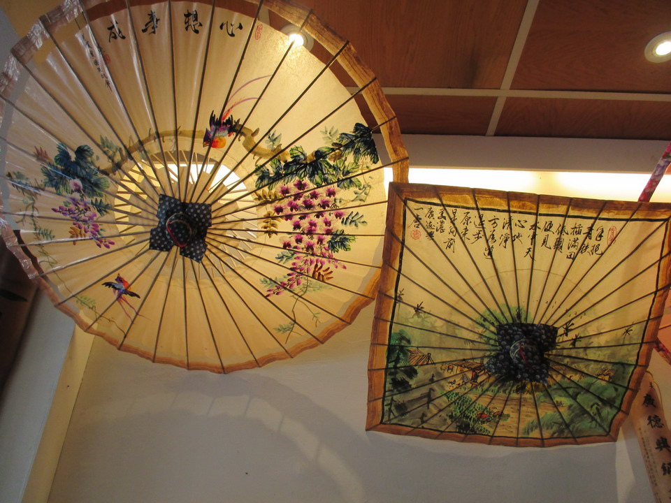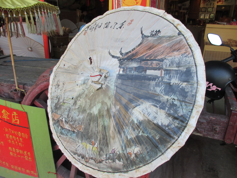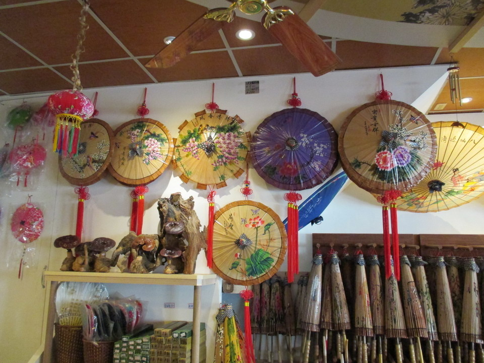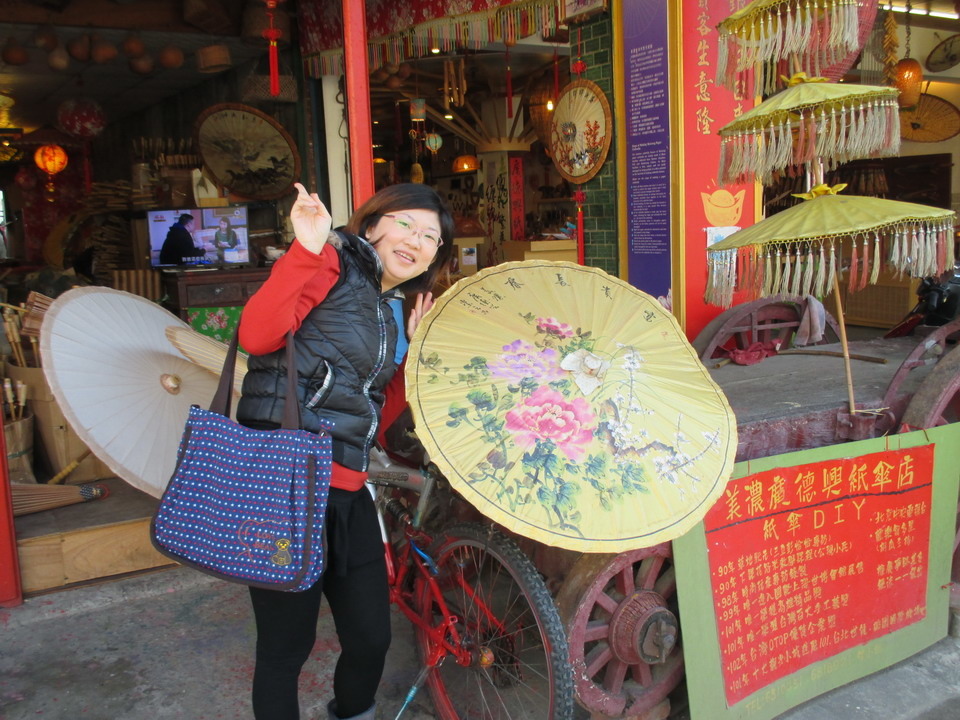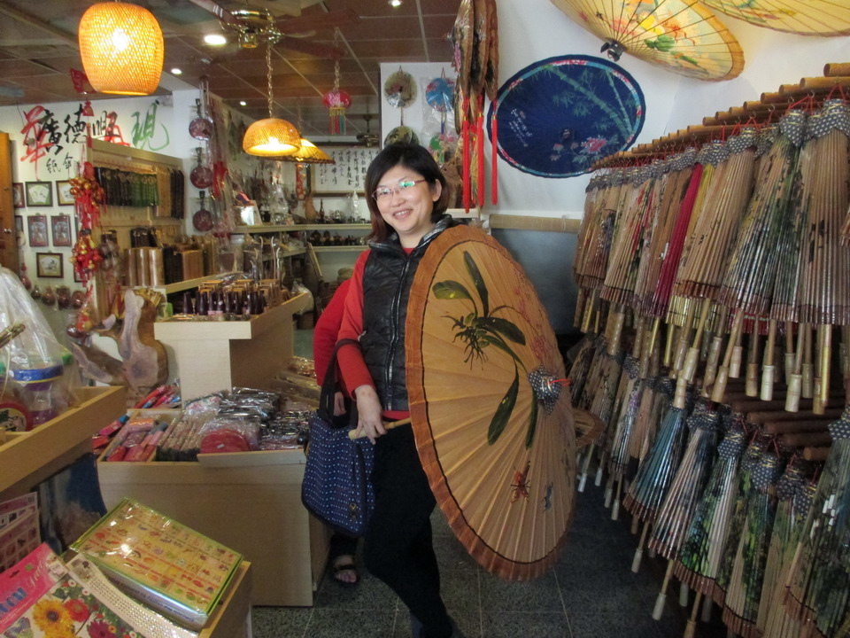 紙傘店內外都放了很多紙傘,傘上大多的圖案都是中國畫風,如花、美女、田園風光等!!