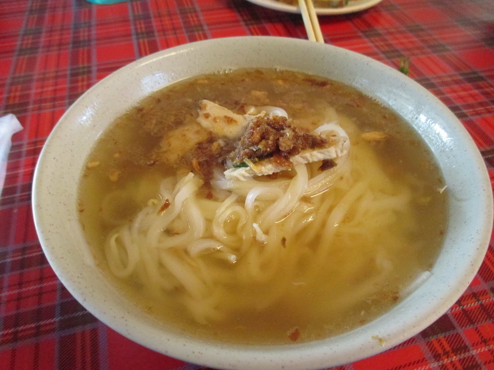 今天是非假日,所以往美濃的路上人車不多,到美濃時已是中午過後,一家人飢腸轆轆,因美濃是客家人小鎮,所以當然要吃板條了,路邊找了一家小吃店,點了板條和小菜就是今天的午餐了!!
