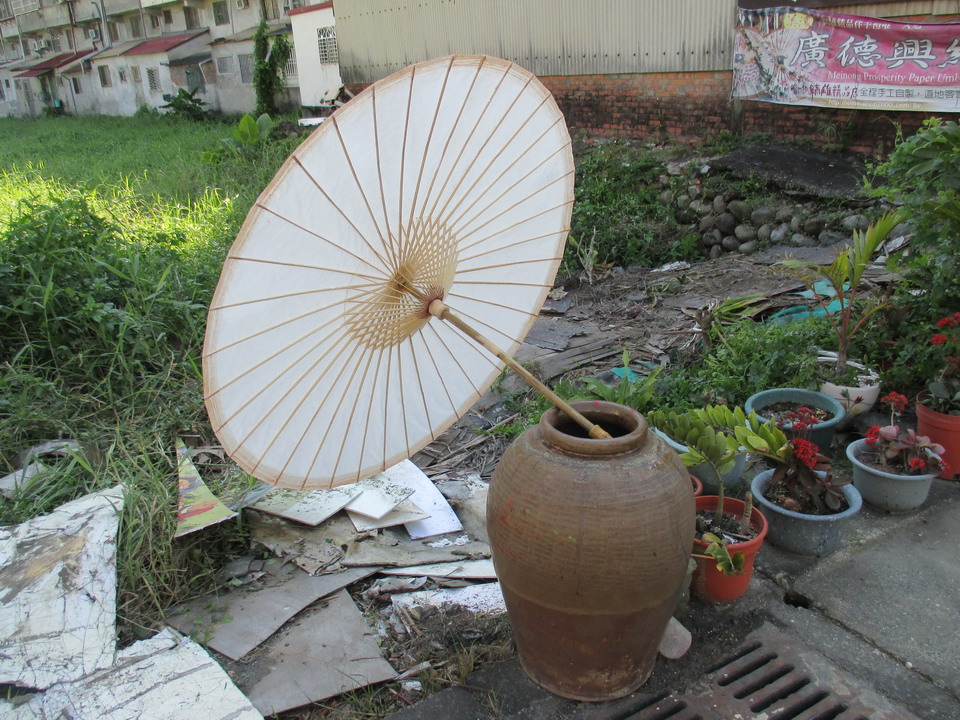 當天看到此白色紙傘放在此甕上是蠻好奇的,後來才知是剛做好,放著風乾等著彩繪!!