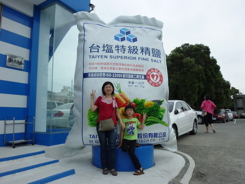鹽來館在大門口有一很顯眼的包裝鹽,就是每個人從小吃到大的精鹽,無論是
