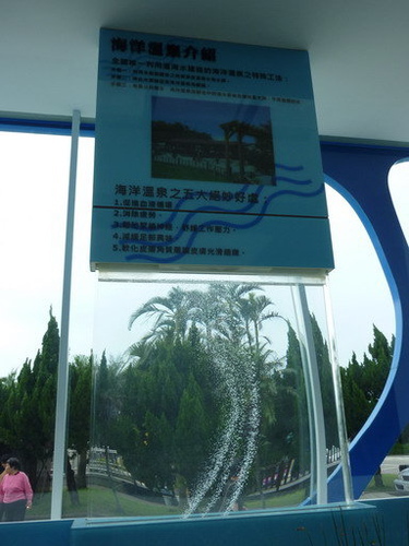 在水的走道二旁則有海洋溫泉、精鹽製程等介紹,但是我較有興趣的則是介紹下方