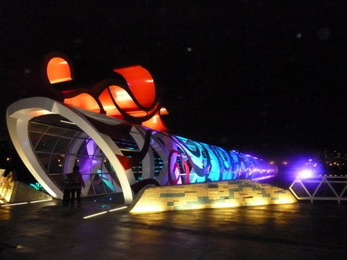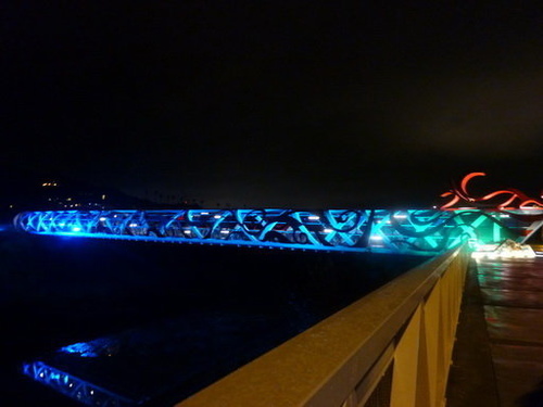 遠遠看橋上有 Red、Green、Blue 三原色。