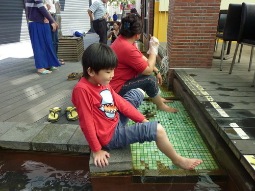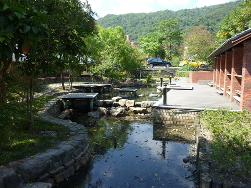第一眼就看到泡腳設施,但因這裏離源頭較遠,所以水的熱度較低!!