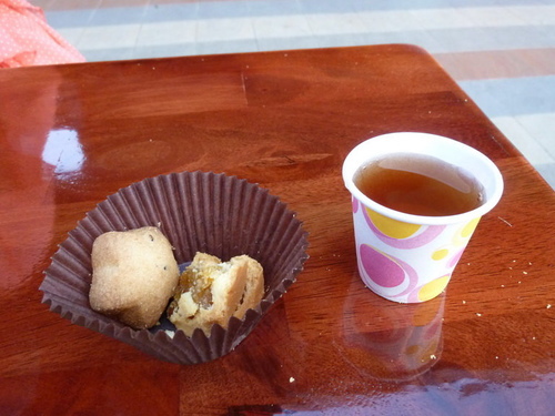 搭配門外自取的熱茶,就是來過的人所謂的套餐,可以在外面的廣場上享用。