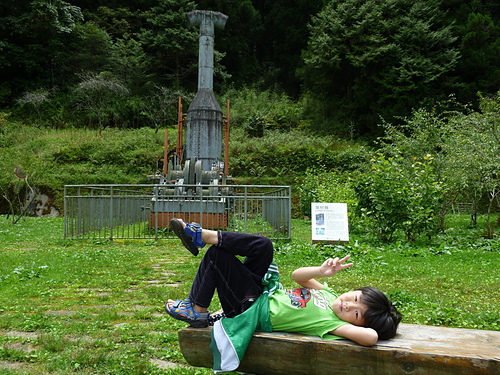在集材机前,flyer 擺出帥氣的睡姿!!