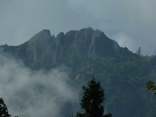不一會兒,雲霧就來了,此時在車站前所看到對面的山,不知是那座山
