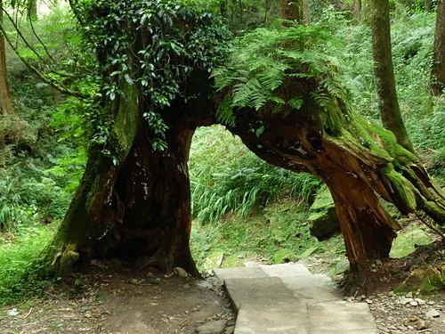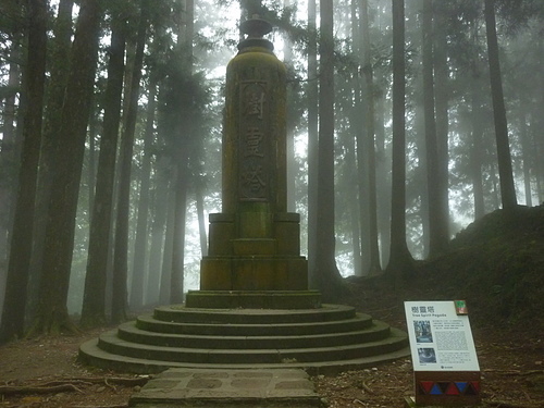 日據時因砍代過多的樹木,而經常有人傷亡,為了安撫樹神而設立的樹靈塔,且以一棵柳杉