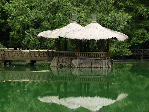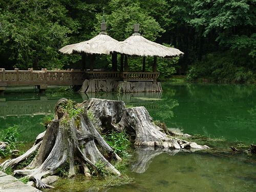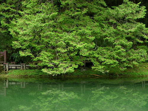 潭水呈碧綠色,可看到樹木,涼亭的倒影,也是一美麗風景!!