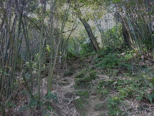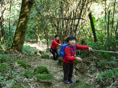休息之後,續往三角點前進,但時的山路更加陡峭,需拉繩子!!