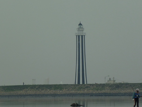 看過去的王功燈塔,塔身為黑白條紋為其特色!!