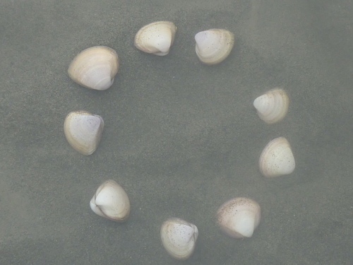 哦!!是奇蹟出現了嗎?? 怎麼出現了9顆蛤蜊排成一圓的現象,這代表了"這是我們排來拍照專用"