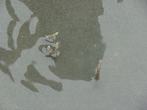 這就是沙蟲,是釣客的最愛,但是你所看到是類似一根管子似的,真正的沙蟲約在此管1m 下