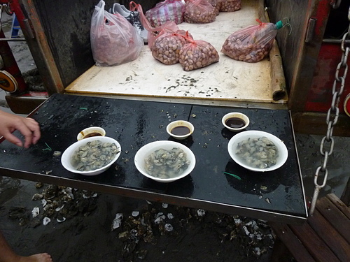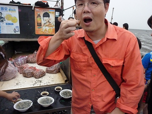 kelly 平常不吃生的,此次也忍不住一嚐新鮮的蚵!!
