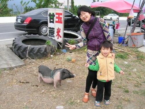 連在路邊的小販都帶著麝香豬出來透氣,不愧是台灣的後花園,生活真的是蠻悠閒的哦!!