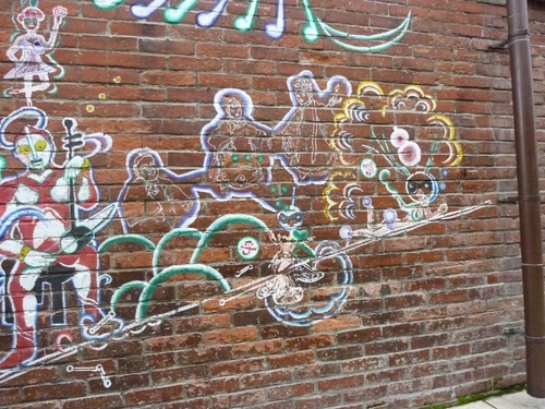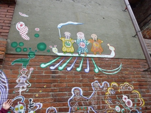 最近蠻 hot 的牆上彩繪,在這裏的牆上也看得到,但是如此地是歷史文化區,是