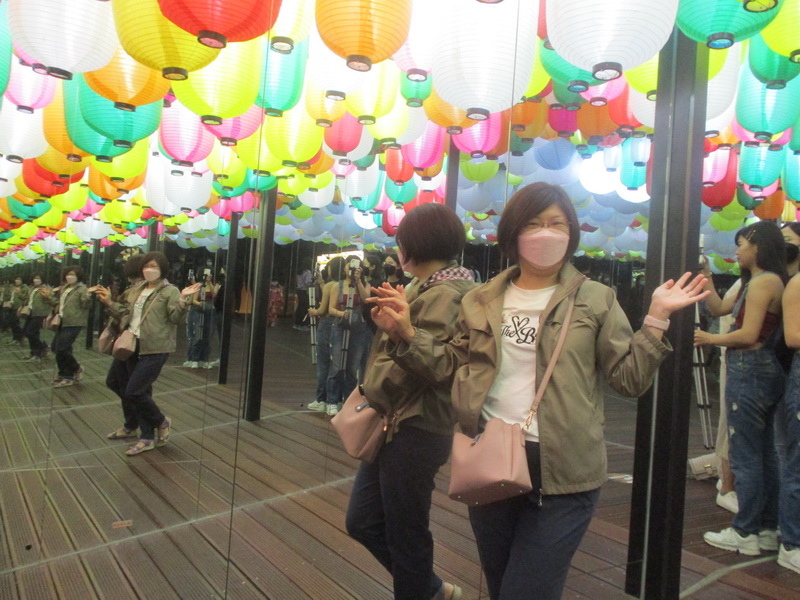 萬花筒鏡面隧道,看我的百變分身。上方則是滿滿五顏六色的燈籠!!