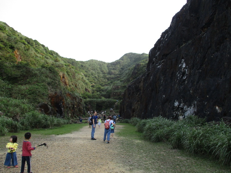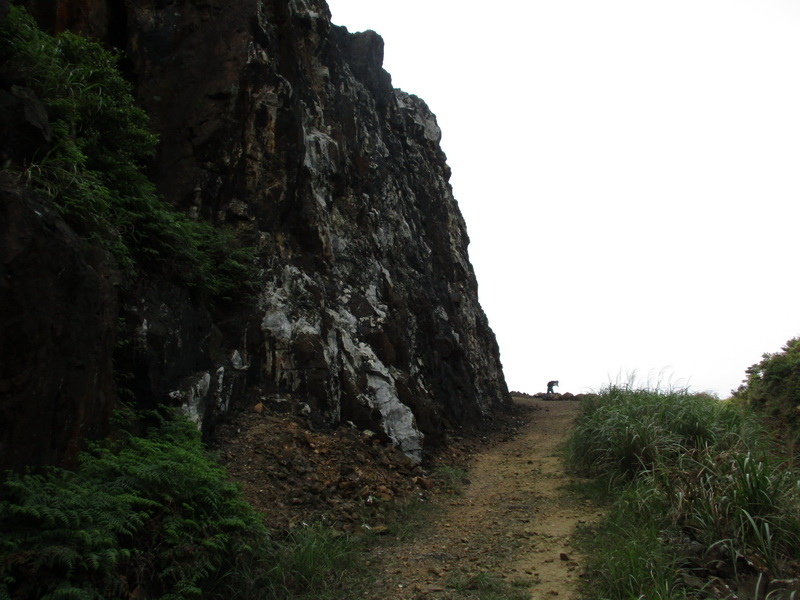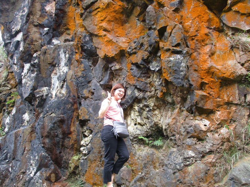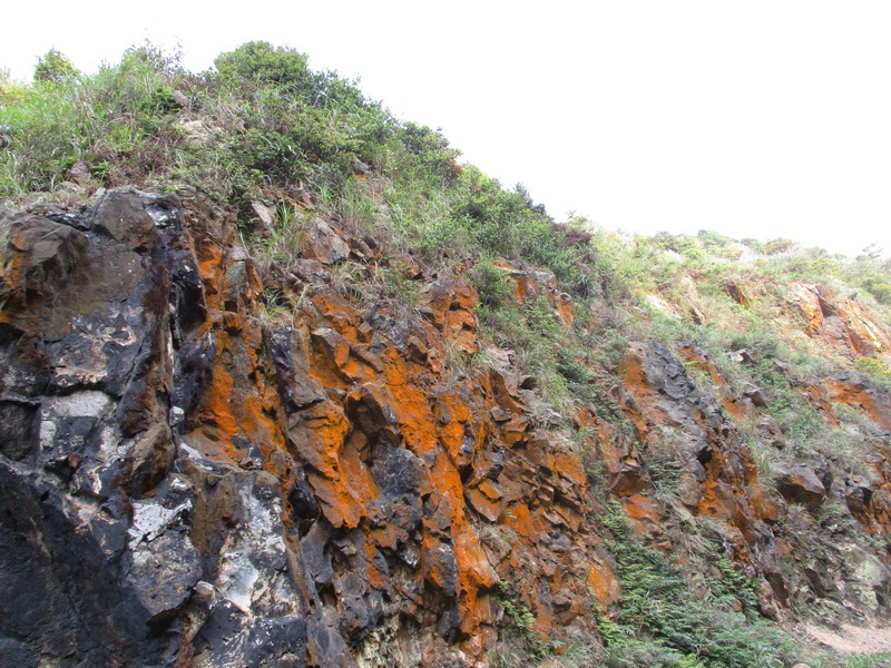 這邊的岩石壁摻有黑色,惑覺好像被火燒過。