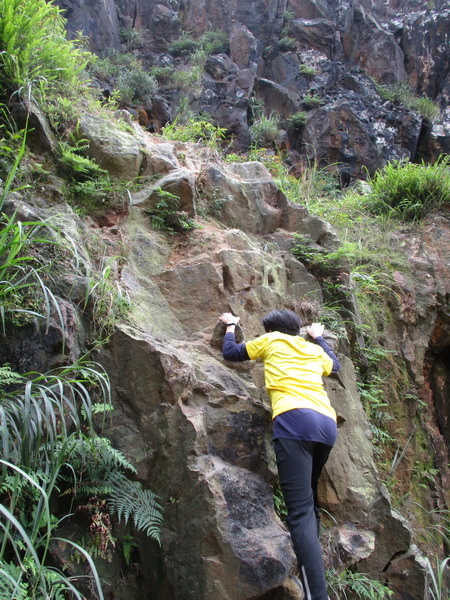 在最內部看到有人順此岩向上爬可以到上方的平台,但是不好爬,要當心。
