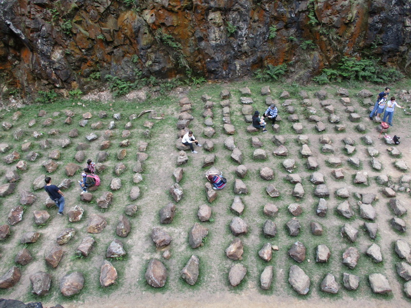 據說之前有表演團體在此表演,將地上之岩石當成座椅,才會排成現況。