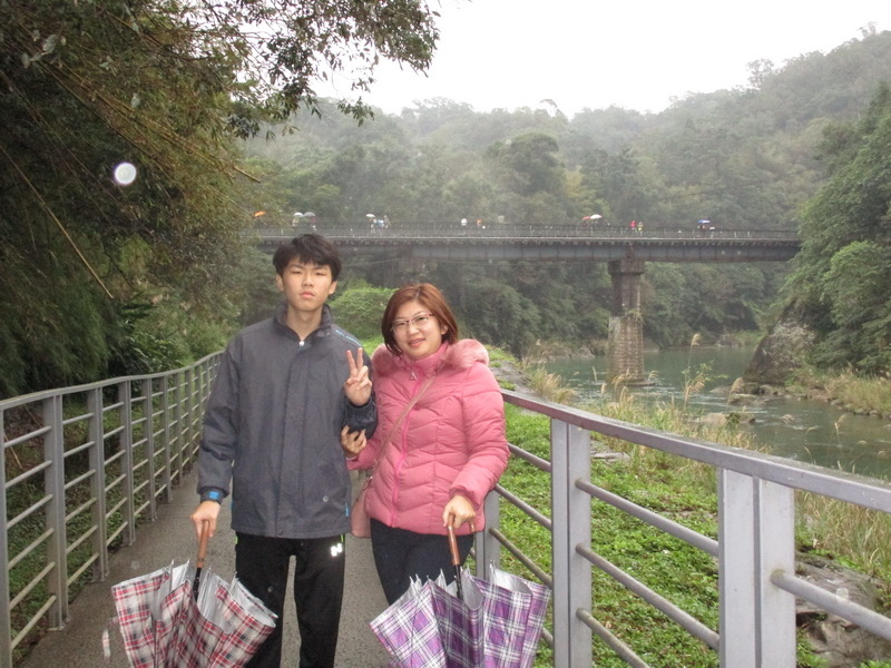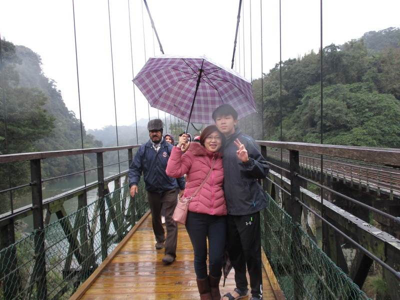 往上走才發現並不是走在平溪線之鐵道上,而是一旁也有一座吊橋和鐵路平行,可惜未遇到火車行駛而過!!