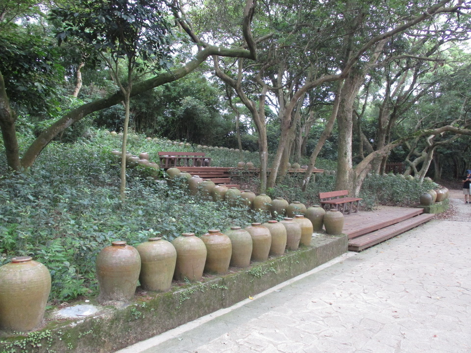 步道一旁5個酒甕的造型,感覺上中間那個好像是硬塞的哦。