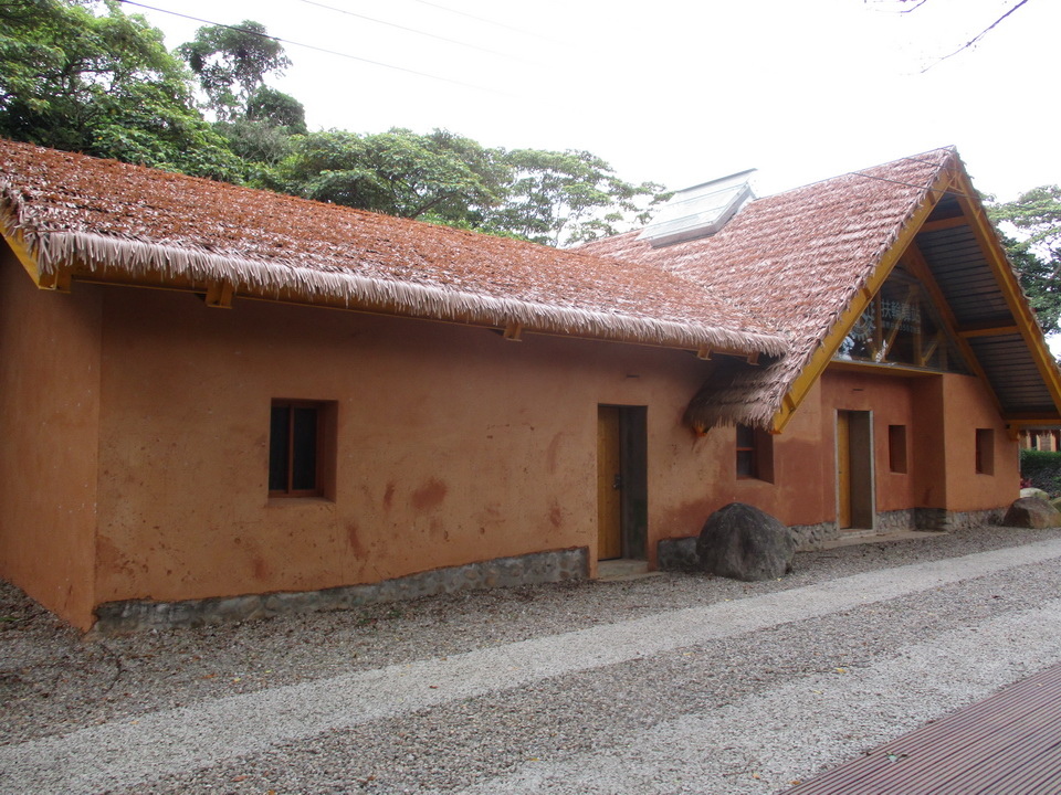 感覺上很像是仿"土塊厝",上為茅草,下為土牆,但就不知建在此處之意義??