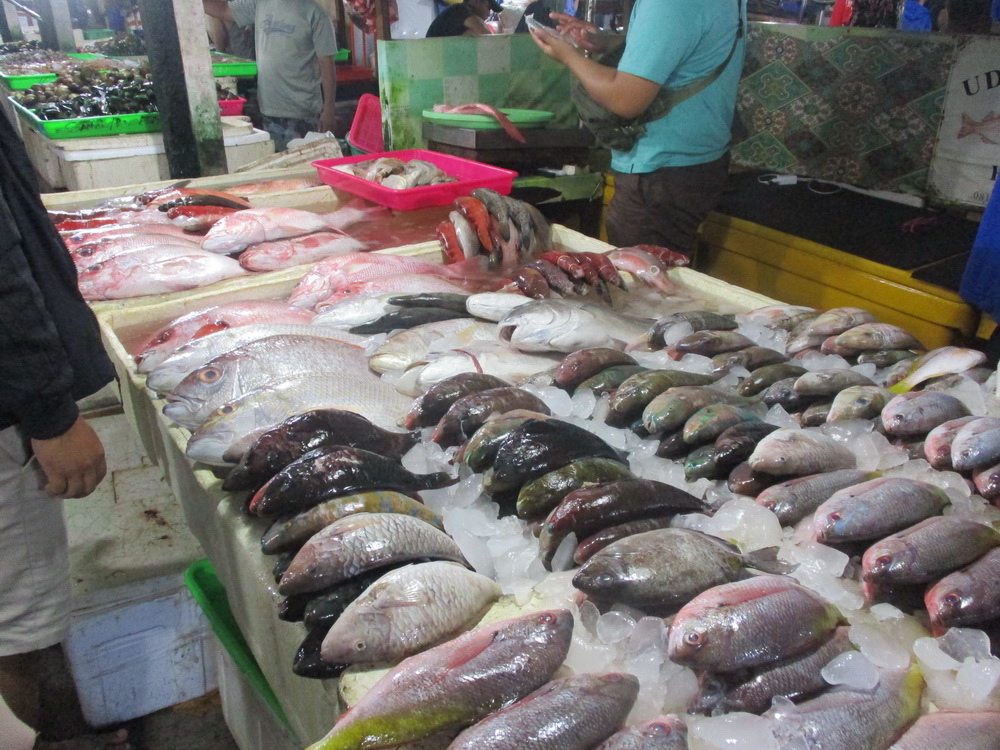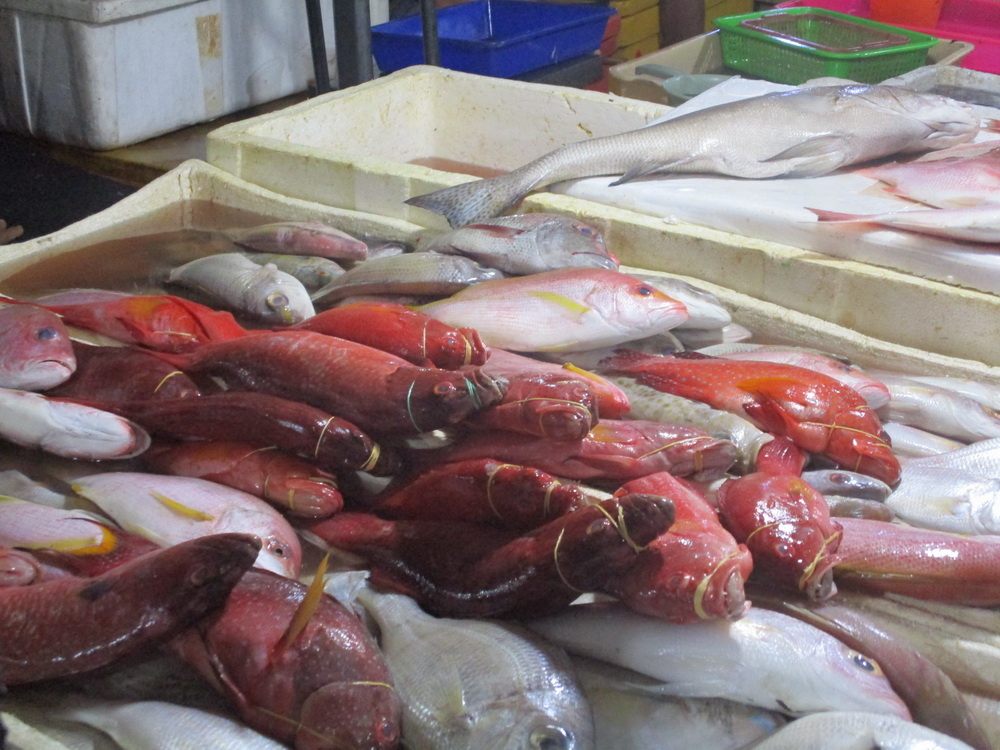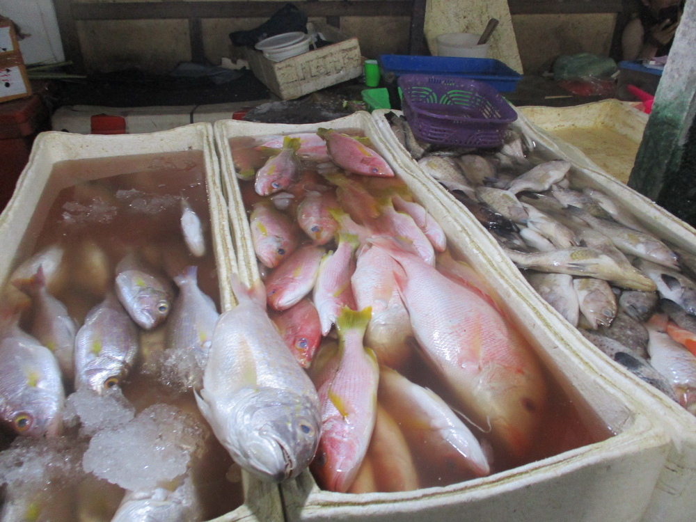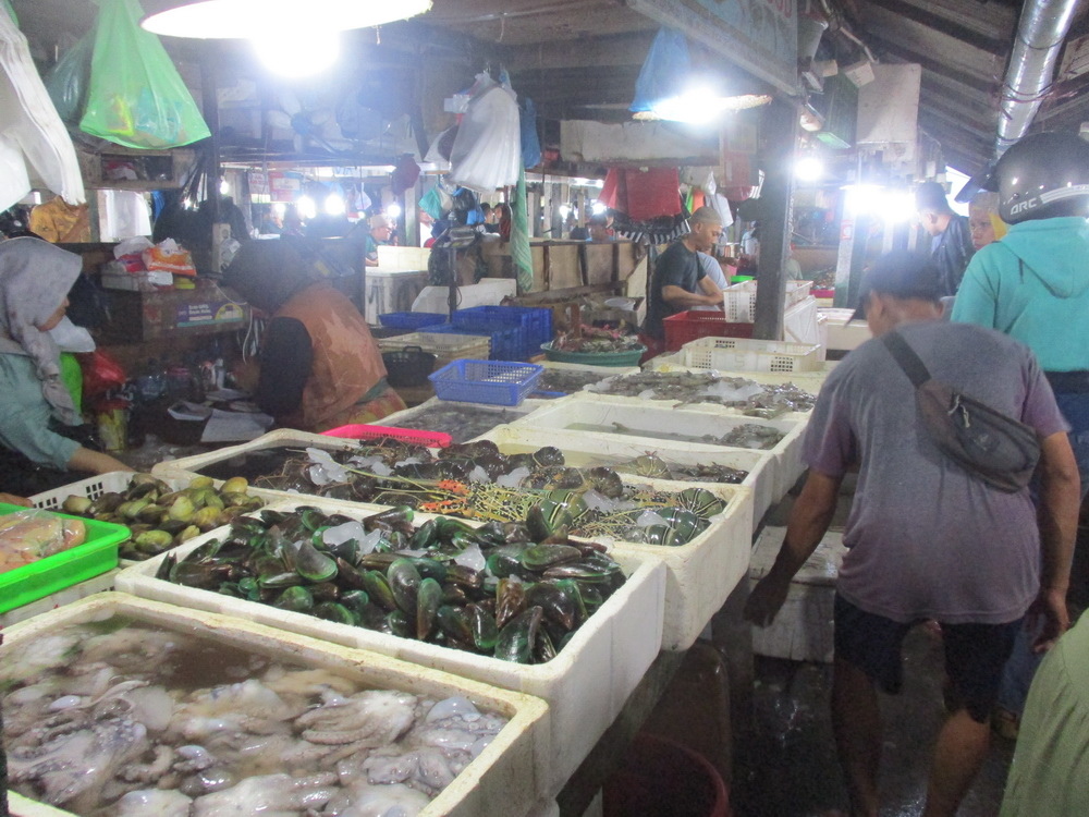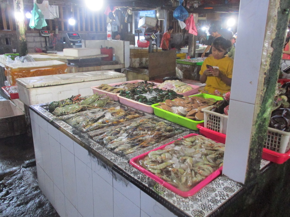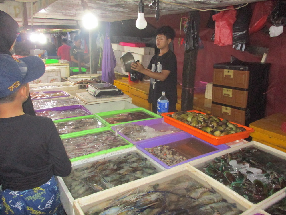 這邊其實有好幾個市場,好處就是一旁也有餐廳只要付點費用,就可以幫你烹煮,所以 jacky 準備買2餐的海鮮,一餐請一旁的餐廳烹煮,一餐帶回去自行烹煮。