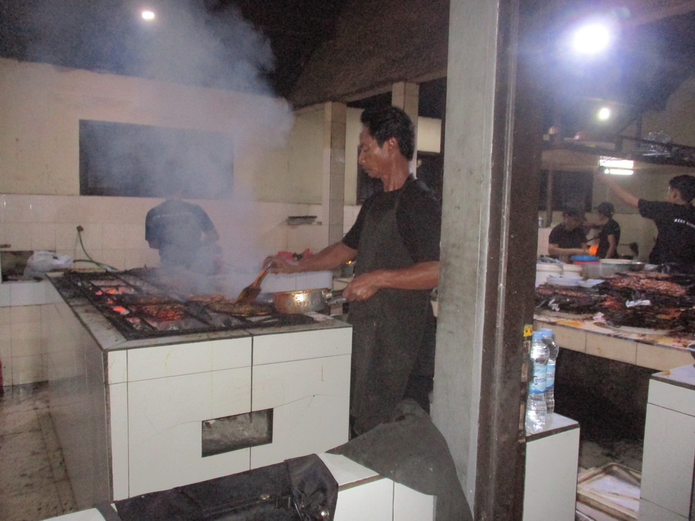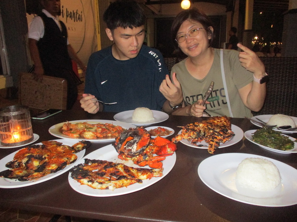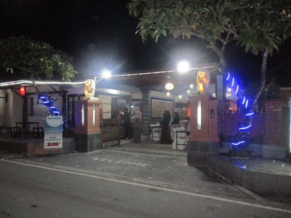 在完成採買工作後,則到一旁的餐廳--Tepi Pantai Bali Seafood Restaurant,這家餐廳在 google 上評價為 4.2顆星,口碑還不錯。外面則有寫著代為烹煮為15k/kg