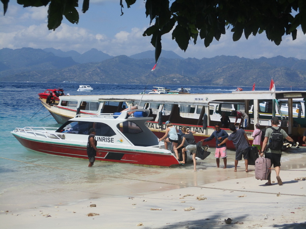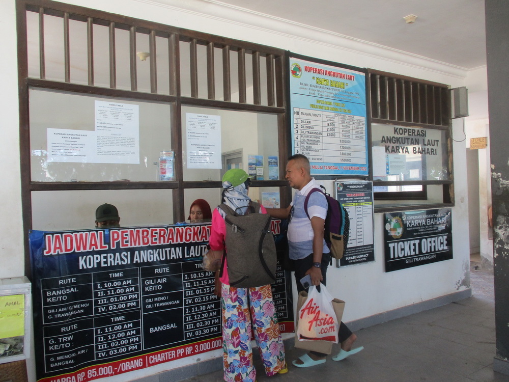 1、Gili T 的公共船碼頭位於Gili Trawangan Port (峇里島或潘尼達島來的船隻都停靠的碼頭) 北邊約200m ,船票為 23krp/人,沒有時間表,從 AM7:00~PM5:00,只要滿37人就開航,切記不要亂跑,因為如果錯過了這艘船,船票就要重買。航行至龍目島的 bangsal port 約30分。