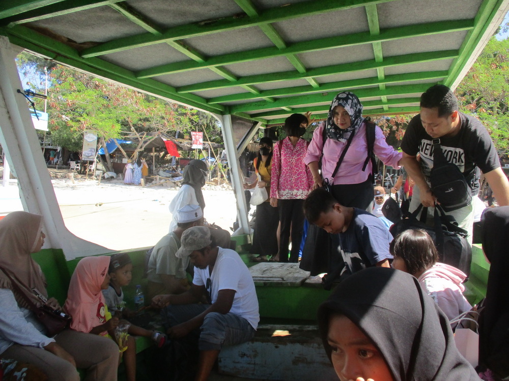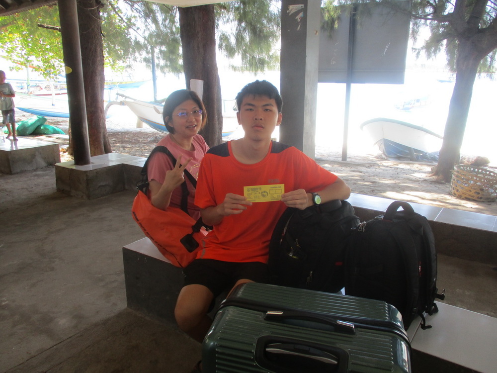 看了一下船票,什麼??? 我們的號碼是 1、2、3號,表示前一艘船剛好已滿,我們只能看到水邊的船隻正離我們而去,駛向龍目島。