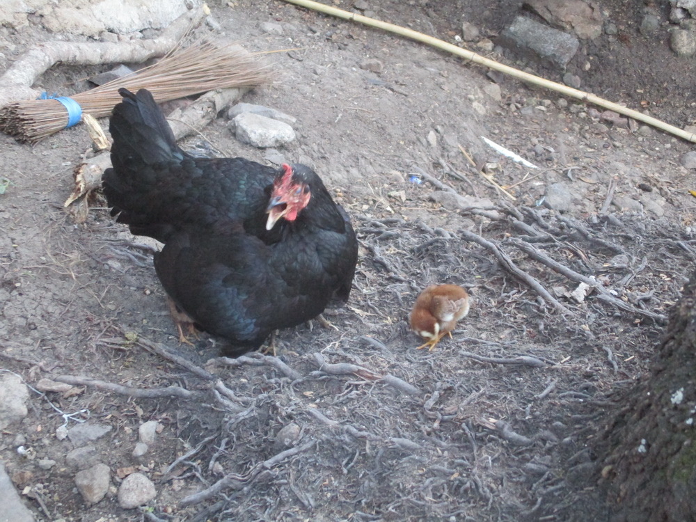 一間間的茅草屋,一群群的雞和小雞,感覺置身於古代小村落的場景。