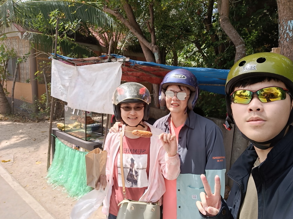 Honda 的機車,東南亞的國家都是大尺寸的輪子,較適合泥土和石子路面。但是所給的安全帽都狀況都不是很好,有的看起來好像是自行車帽,且扣帶都有些問題,只好勉強湊合著用。