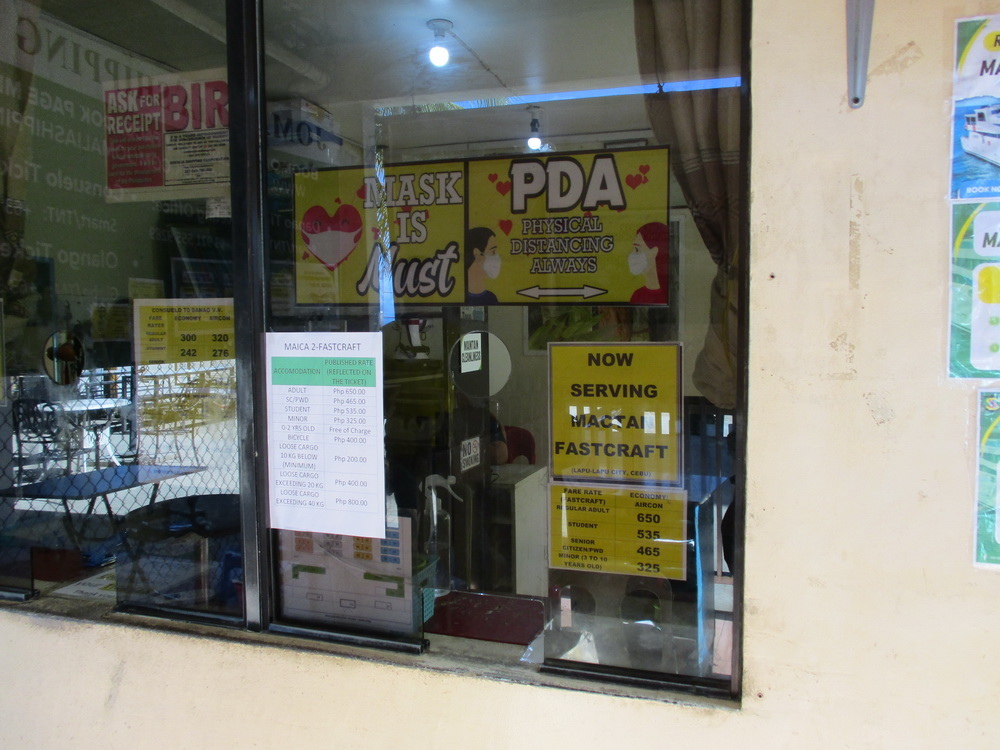 預計搭乘 AM10:00 的快船,直接到宿霧的 Mactan ,船票為 650p/人,學生票要看証件。