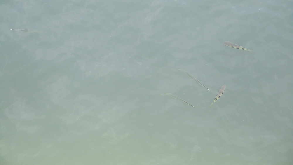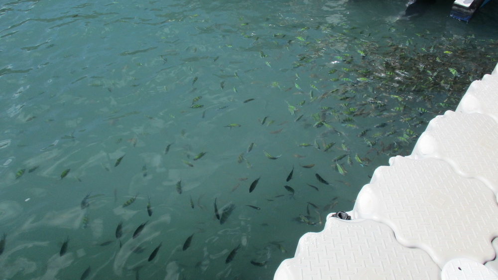 港口邊可以看到小魚和小針魚悠游於水面上。