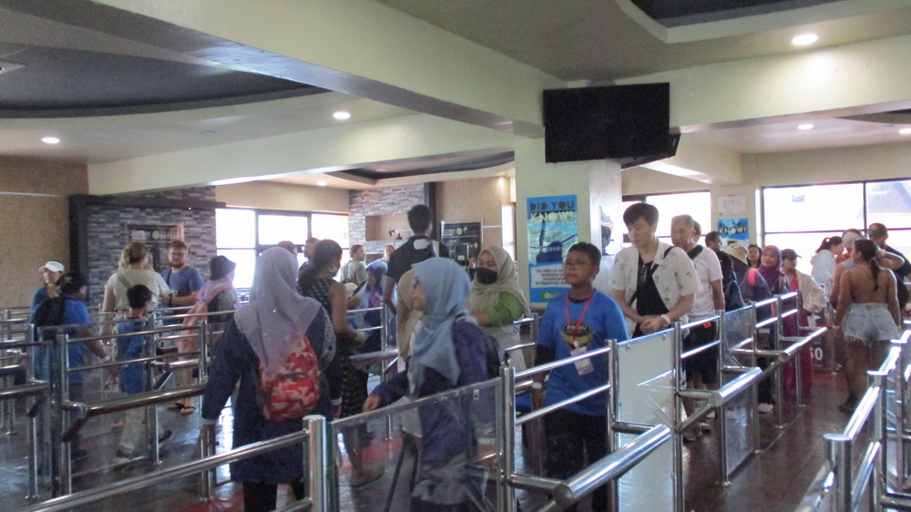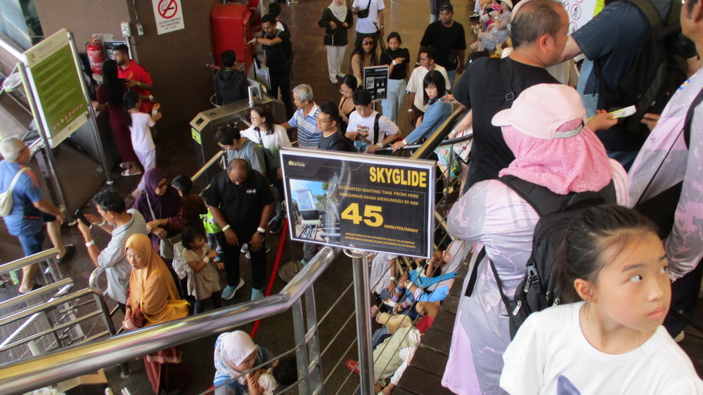 SkyCab 的售票處,jacky 是事先於 Klook 預定5合1的門票,約620元/人,雖然已預訂,但仍需排隊換實体票,實体票就是一自黏手環,雖然今天是馬國連假的最後一天,但還好人沒很多。