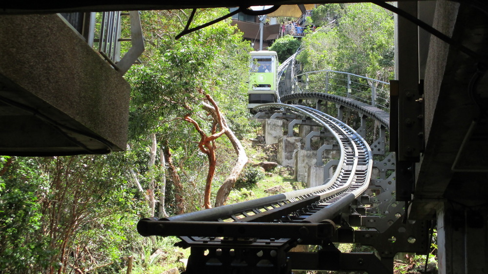 2、沒如老人或小小孩,建議不用買 SkyGlide 的套票,因載人不多且只有二台車對開,又應高度陡,速度不快,所以大排長龍。此路段走路約15~20分,落差約50m。
