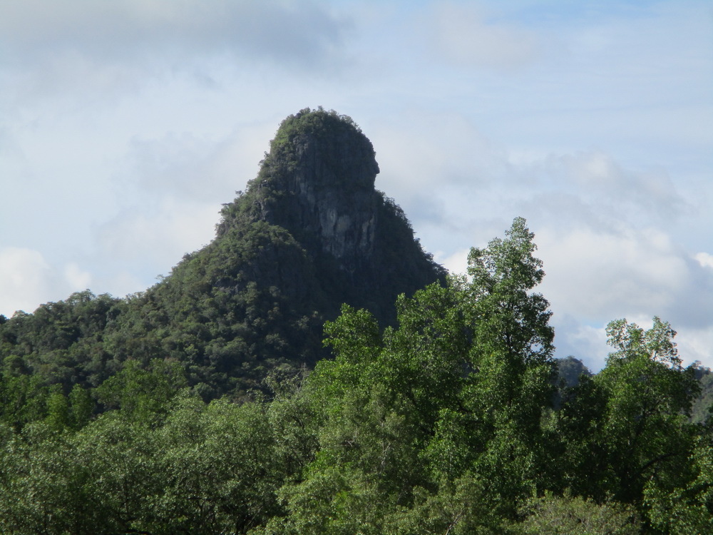 遠看、近看,都很像大猩猩或是金鋼,頭部下方無綠樹而露出岩石的部份 ,像是大猩猩的大嘴,所以近看感覺更像是張口大叫的金鋼。
