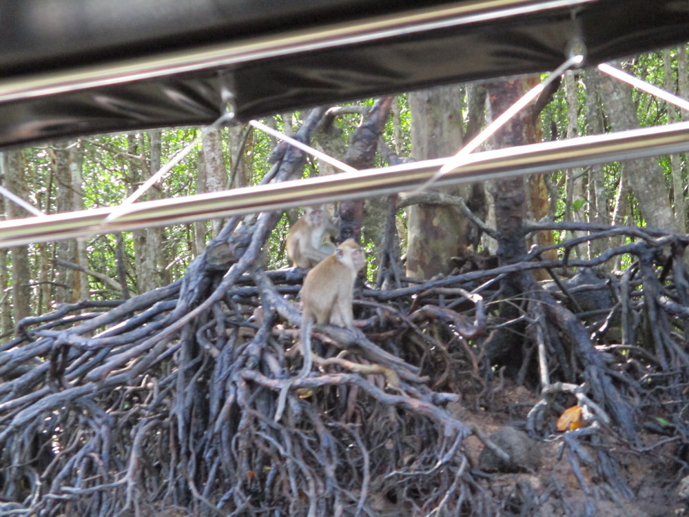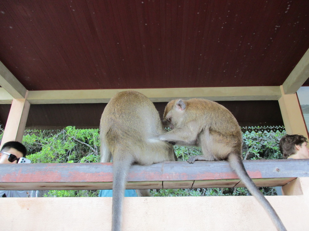 甚至還會上船頂來找尋食物,且這些猴子還蠻會游泳的,不像孫悟空是隻旱鴨子。