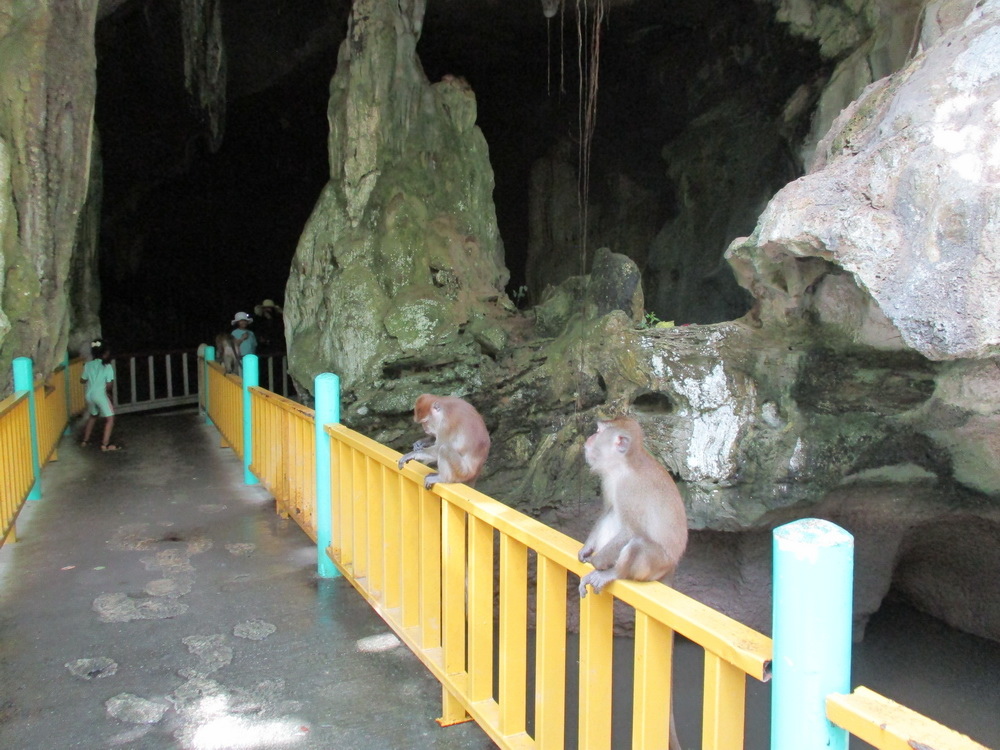 約3分鐘即出洞內,猴群家族已在二旁恭候,當天是未看到猴子在搶食,不過還是小心為妙。