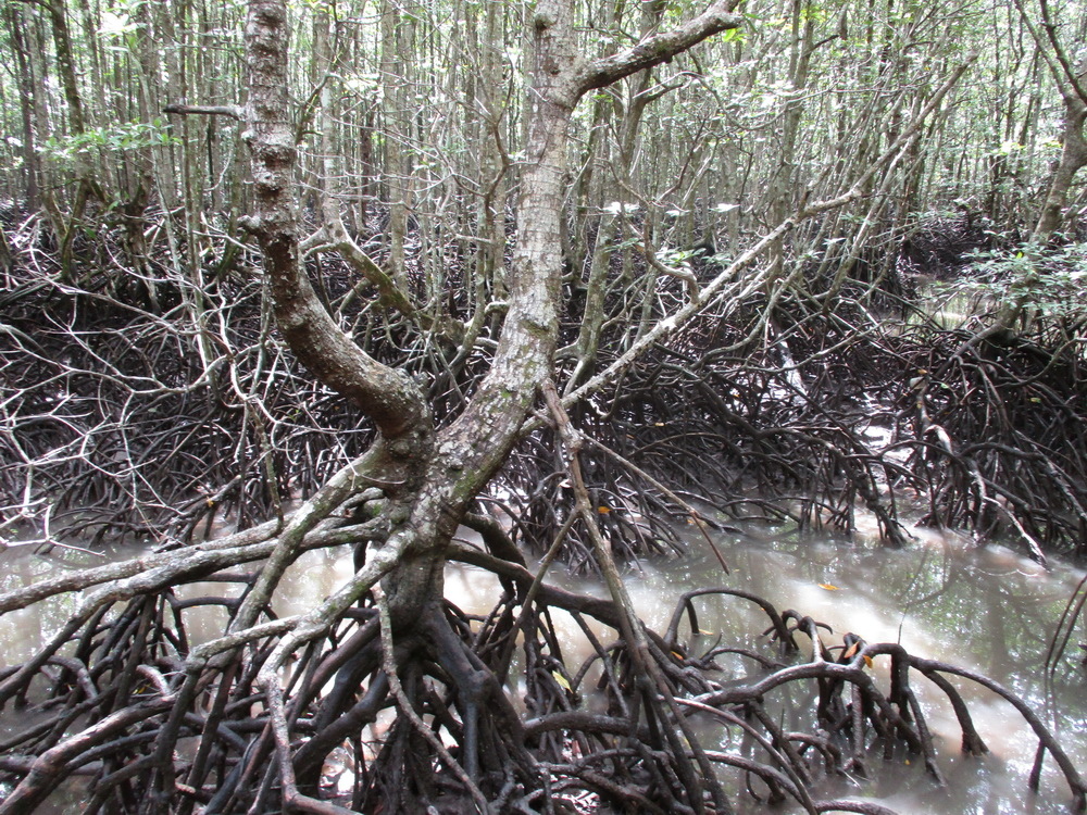 一大片的紅樹林,從其樹根的高度可以看出滿水期的水位高度。