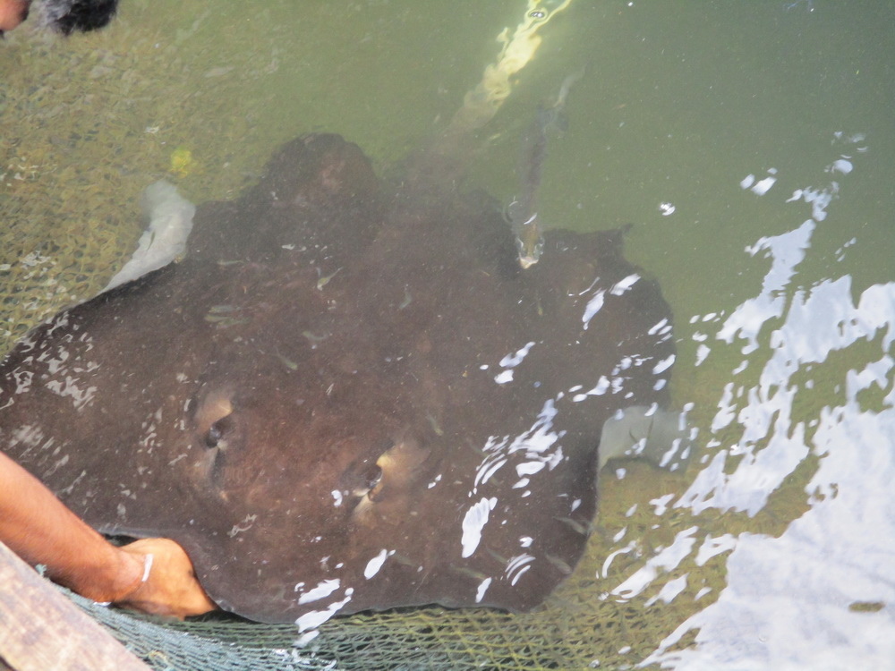 工作人員會一池池表演餵食秀,因為當有遊客來時工作人員就會在表演餵食秀,所以大部分的都吃飽了,只有魟魚的食慾最好。
