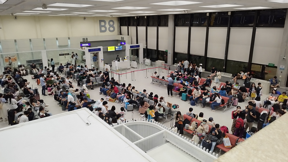到了8號登機門,內部都是在等飛往新加坡的旅客。