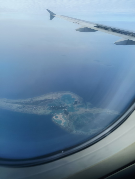 已到印尼國境了,可以看到下方的珊瑚礁島嶼。