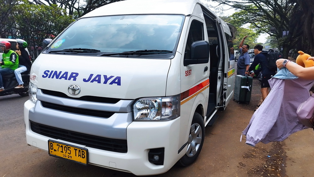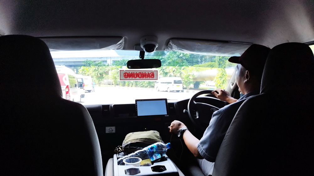 5、如要到萬隆可以直接依告示牌走到巴士站,有分 bus 及 shuttle bus ,票價約 185k/人,有多家公司經營,班次很多。shuttle bus 算是舒適,但缺點就是沒有固定的下車點,另一位旅客是要求在高速路一旁下車,跟台灣40年前很像。車程約3~4小時。